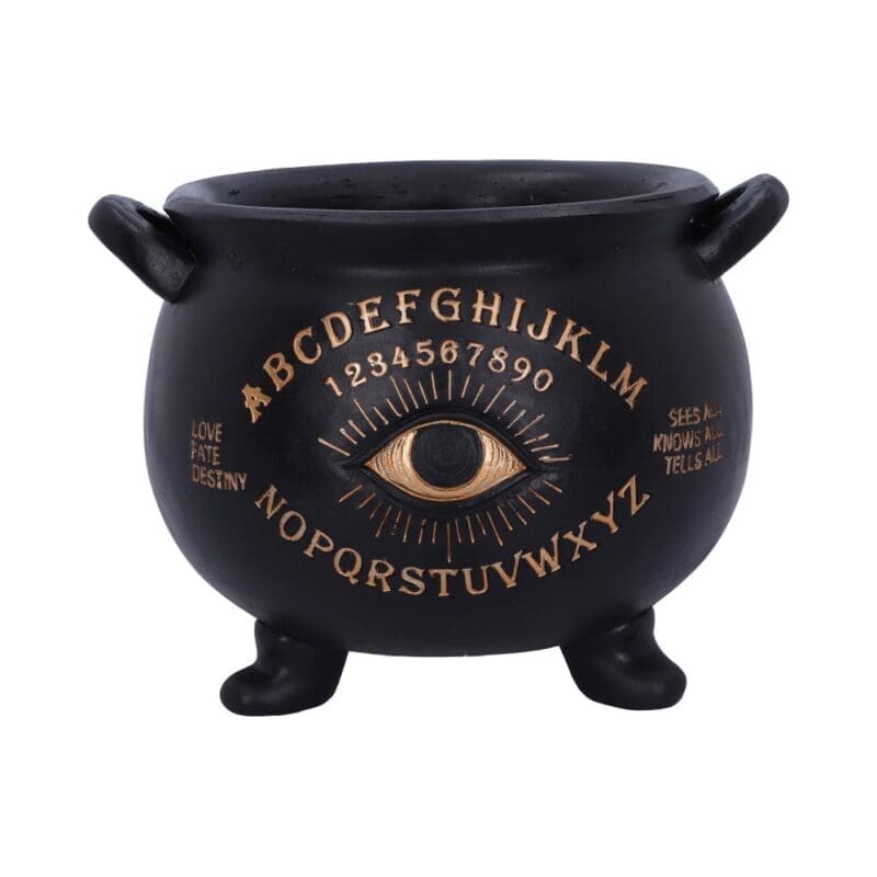 From alternative masters Nemesis Now, this large cauldron is any occult enthusiasts dream. With a wide opening at the top, ready to fill with your treasured crystals and trinkets, this cauldron has a matte black finish and features a golden all-seeing eye at the centre. Emblazoned in Ouija Board lettering and numbers, the cauldron has the words ‘Love, Fate, Destiny’ and ‘Sees all, Knows all, Tells all’ flanking the Eye. Cast in the finest resin, this piece would make the perfect addition to any dark altar.