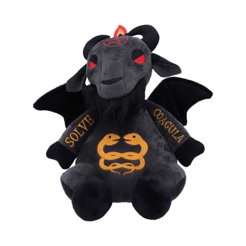 The Fluffy Fiends range from alternative brand Nemesis Now brings together the occult and the cuddly. This adorable Baphomet plush is soft to touch and shows a new sweet side to this deity! Featuring the words ‘Solve’ and ‘Coagula’ emblazoned on his arms in gold, two entwined snakes on his torso and a bright red pentagram stitched into his forehead, this plush is the perfect addition to any alternative home.