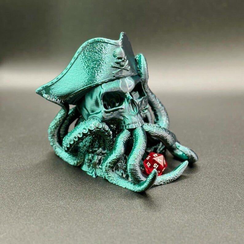 Are you tired of your dice rolling off the table? Do you want to add some excitement to your games? Look no further than our Captain Kalimar Octopus Skull Pirate Dice Towers! Perfect for Dungeons and Dragons.