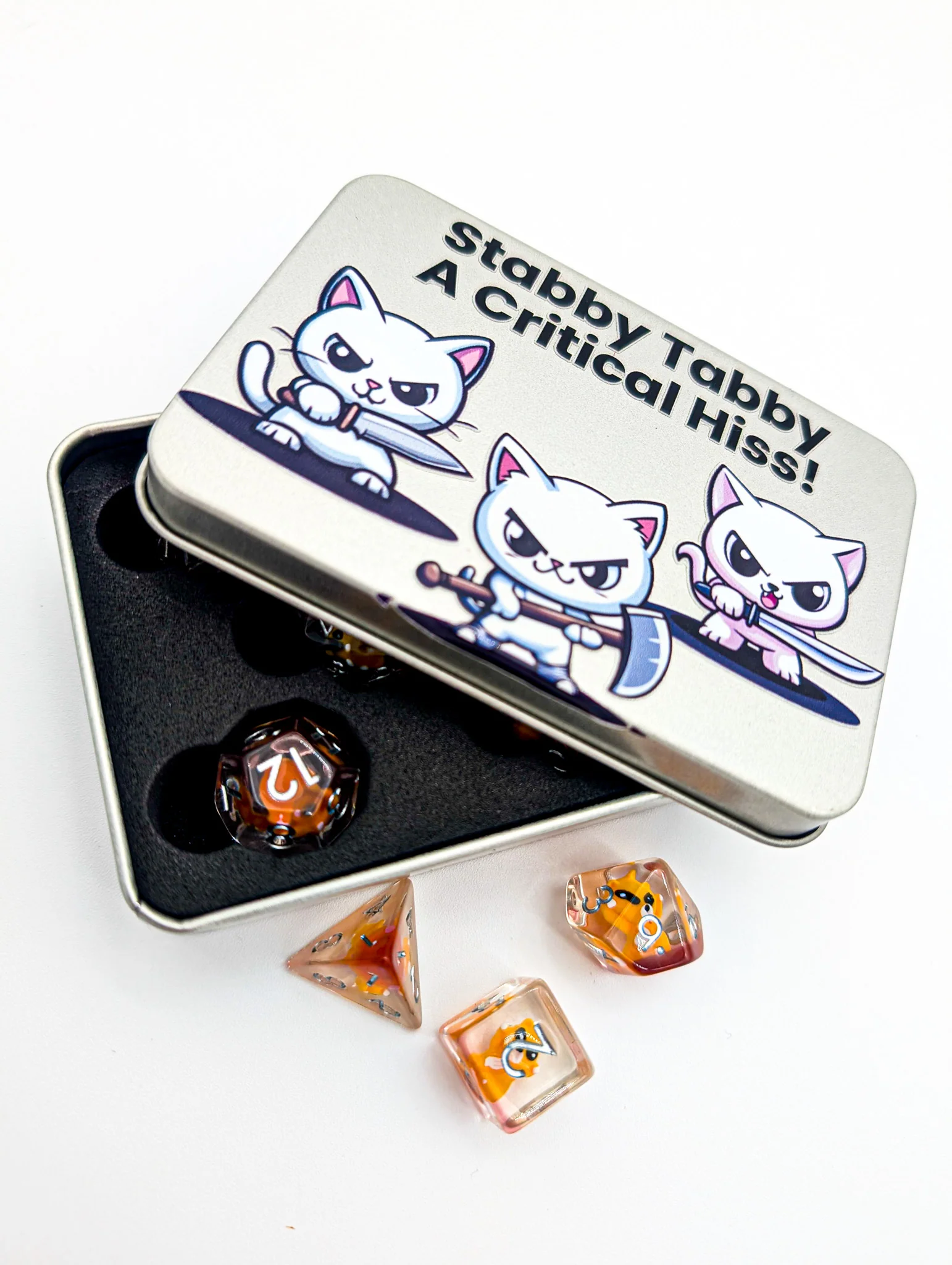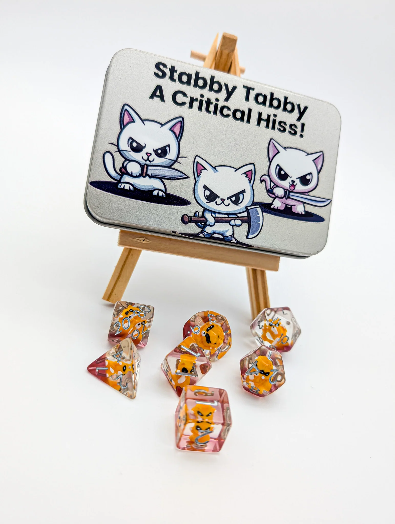 Unleash your inner feline fury on game night with the Stabby Tabby Cat Dice Set! This complete 7-piece polyhedral dice set is the purr-fect accessory for any tabletop adventurer who loves cats and critical hits. It’s an ideal TTRPG gift for Dungeon Masters, or a charming upgrade to your own collection.