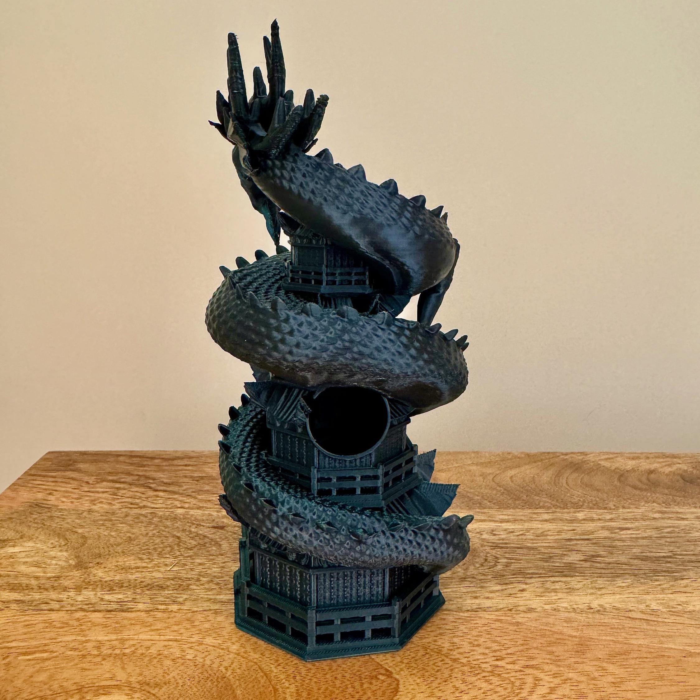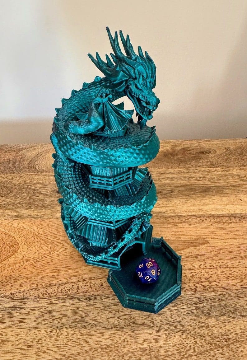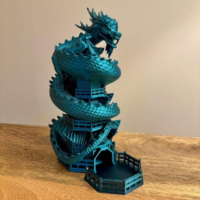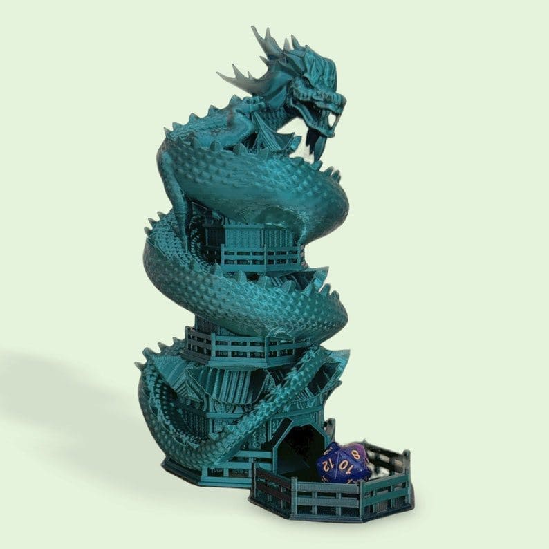 Are you tired of your dice rolling off the table? Do you want to add some excitement to your games? Look no further than our Chinese Dragon Dice Towers! Perfect for Dungeons and Dragons. The Chinese Dragon stairway guarantees maximum randomness for your rolls.