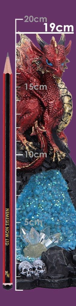 Crystal Cave Dweller is a mesmerizing dragon figurine featuring a red and gold guardian atop a glowing blue crystal cave. Hand-painted with metallic hues and crafted from high-quality resin, this collectible is a must-have for fantasy lovers, gothic dcor fans, and mythical creature enthusiasts. A standout addition to any display.