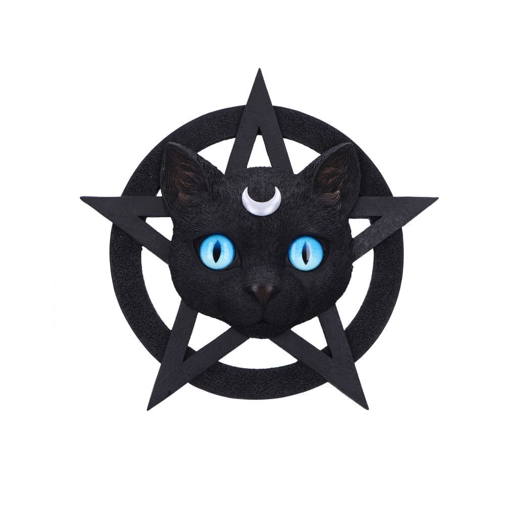 Enchant your space with our Feline Worship Wall Plaque, from Nemesis Now’s premium collection. A 26cm resin plaque designed in the shape of a pentacle featuring the head of a black cat at its center. Crafted from high-quality resin, this wall hanging exudes an air of mystery and magic. The black cat, with bright blue eyes and a distinctive sideways half-moon crescent on its forehead, adds a touch of whimsy and allure to the piece. Meticulously crafted and hand-painted, this wall hanging is not only a decorative accent but also a symbol of feline mysticism. As part of our collection of occult-inspired decor, this Feline Worship Wall Hanging Plaque is ideal for those who seek to infuse their space with the enchantment and symbolism of the mystical feline. Explore our diverse range of mystical-themed pieces, each crafted to add a touch of magic to your surroundings.