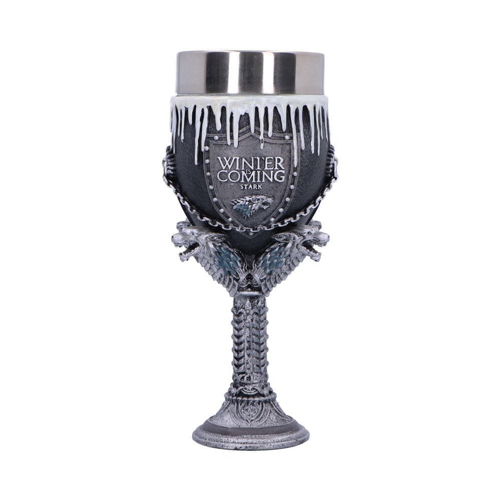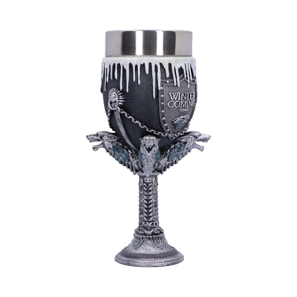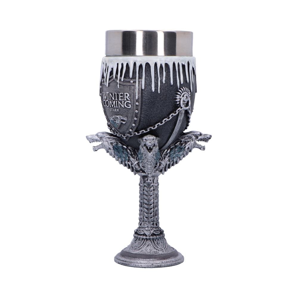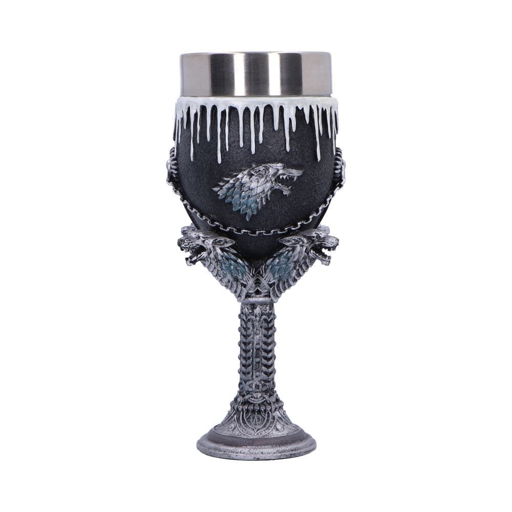 Pledge your allegiance to the North with this officially licensed Game of Thrones House Stark Goblet. A stunning piece of official GOT merchandise, this collectible is the ultimate way to honour the legacy of Winterfell.