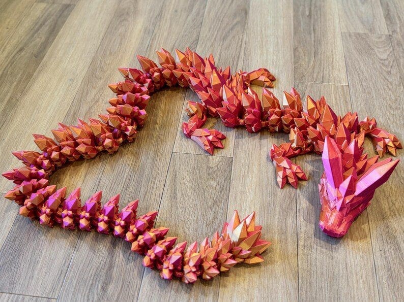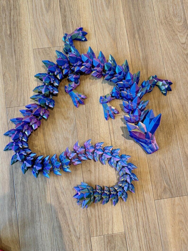 🐉Feel the magic of our Flexible Mythical Crystal Dragon! Bringing a beautiful, articulated design to life, this 3D printed dragon is fully articulated. It makes an ideal stress relief model or unique piece of art. Let this majestic creature inspire your imagination!