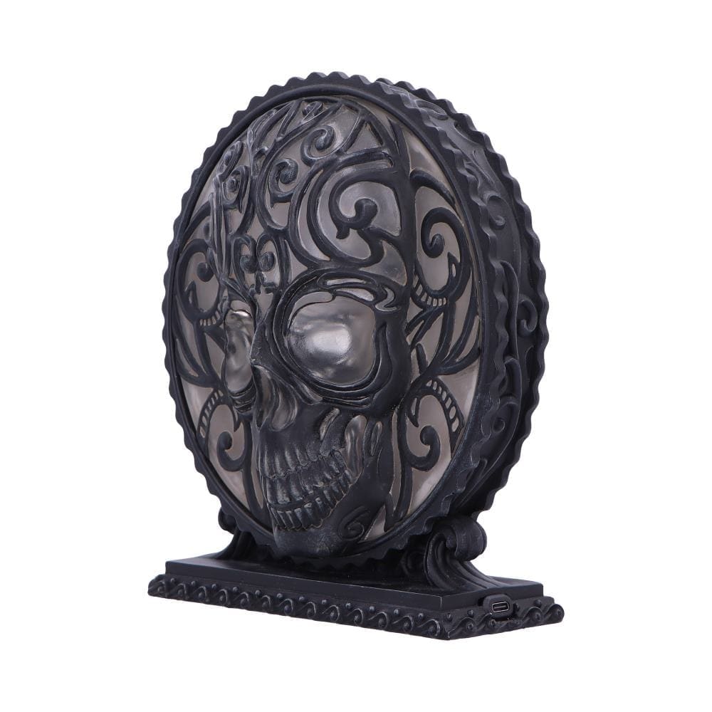 Perfect for a dimly lit study, an atmospheric living room, or as a piece of alternative bedside lighting, this lamp adds a touch of sophisticated darkness to your space. It is an essential acquisition for collectors, lovers of macabre art, and anyone looking to cultivate a gothic aesthetic.