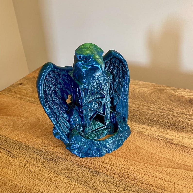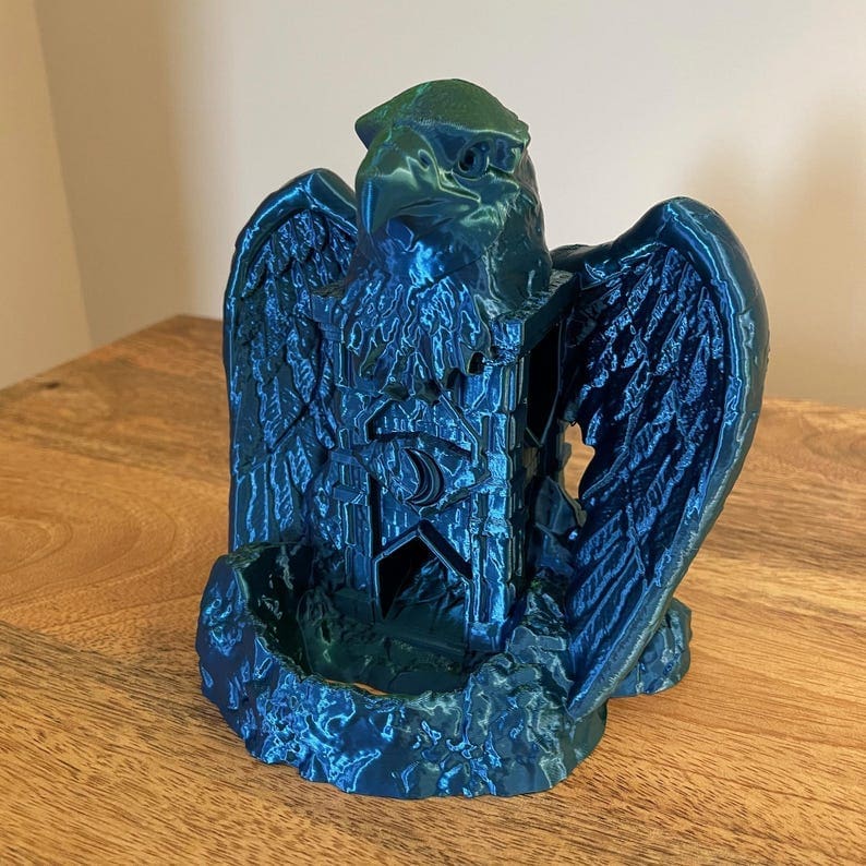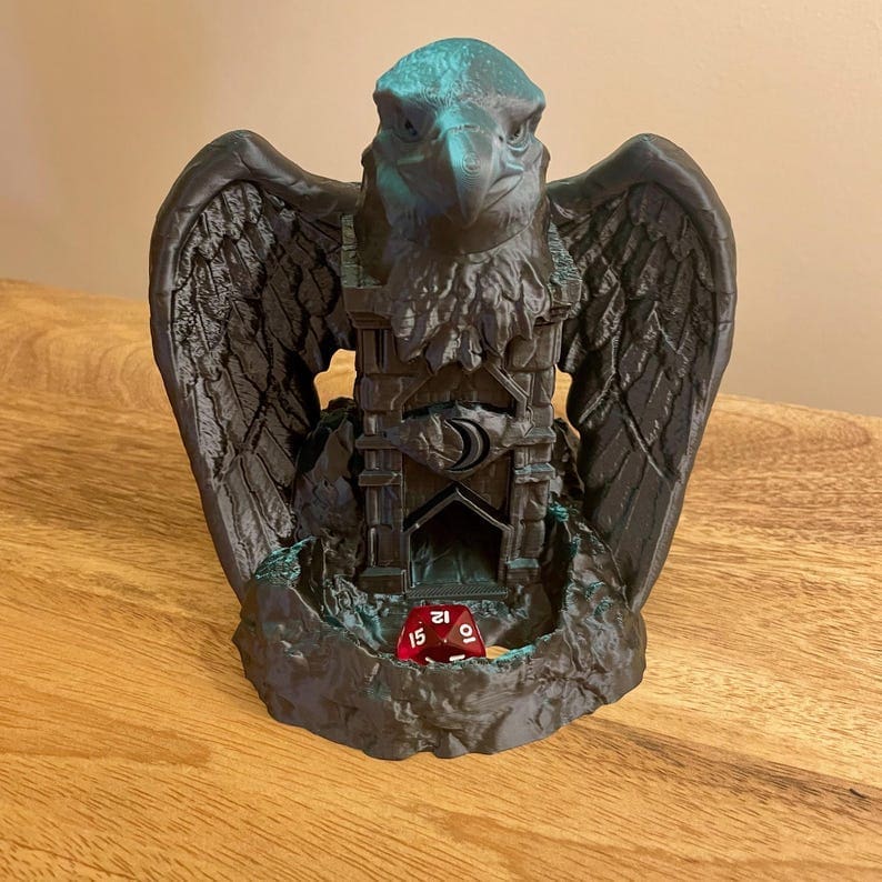 Are you tired of your dice rolling off the table? Do you want to add some excitement to your games? Look no further than our Idol Elara Eagle Dice Towers! Perfect for Dungeons and Dragons. The Idol Elara Eagle stairway guarantees maximum randomness for your rolls.