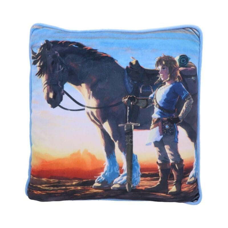 Get ready to explore the Kingdom of Hyrule with this Legend of Zelda Breath of the Wild Cushion. Featuring Link with his horse, this cushion is luxuriously soft and perfect to snuggle up whilst playing your favourite games.
