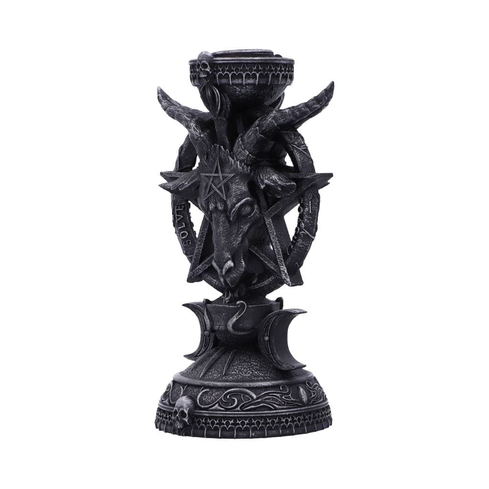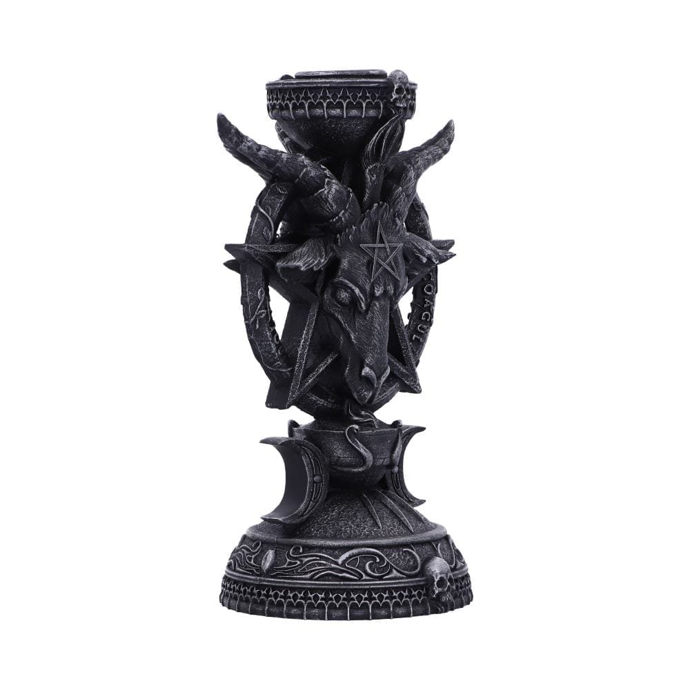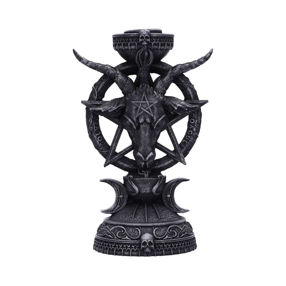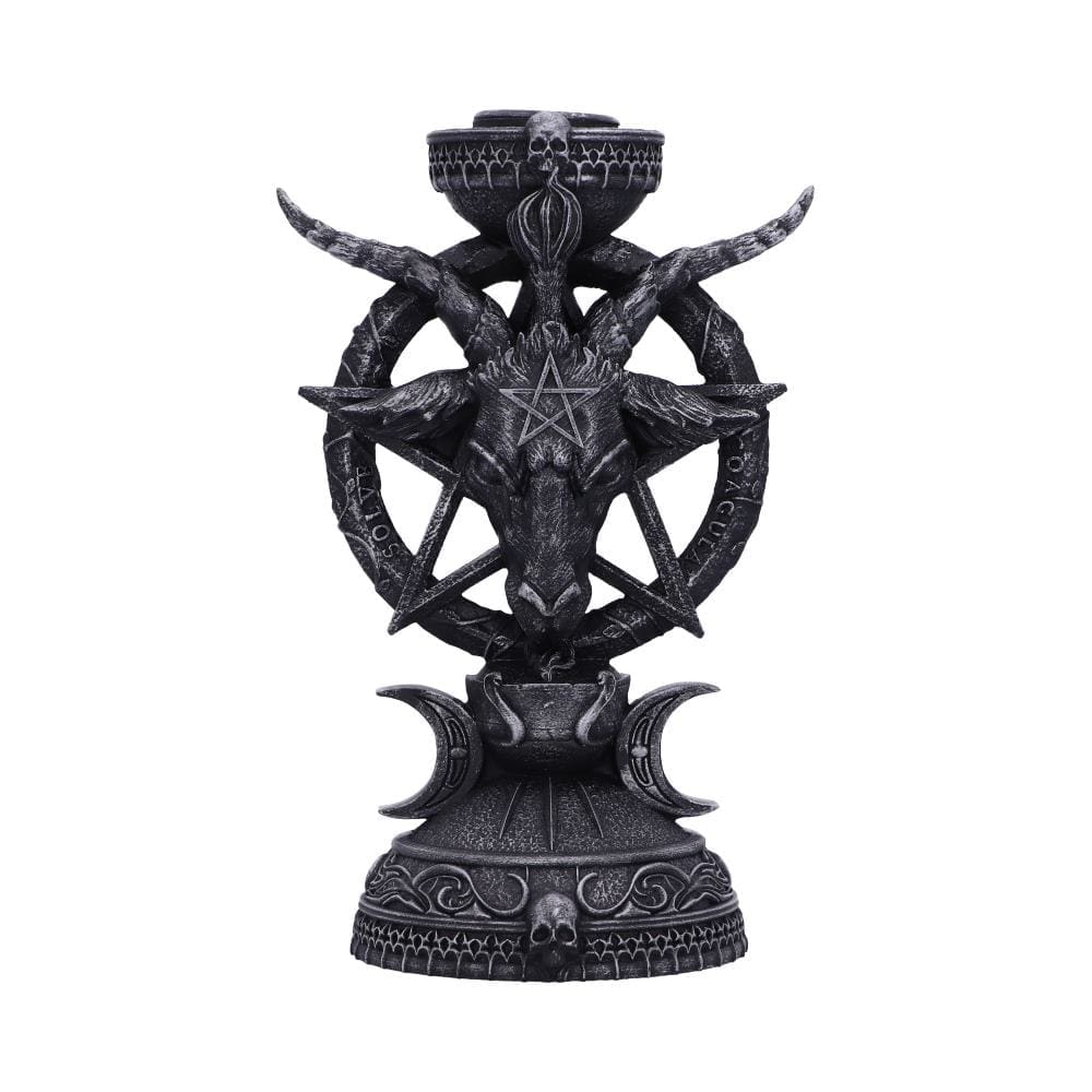 This occult candle holder features a pentagram, which sits on the head of a triple-horned Sabbatic Goat. Above his head sits a small bowl, which is the perfect fit for your favorite scented candlesticks. Whereas at the base of the holder, a variety of gothic symbols and imagery can be seen, adding to the satanic features of this beautiful piece. Cast in the finest resin before being expertly hand-painted this is a must-have product for any gothic lover.