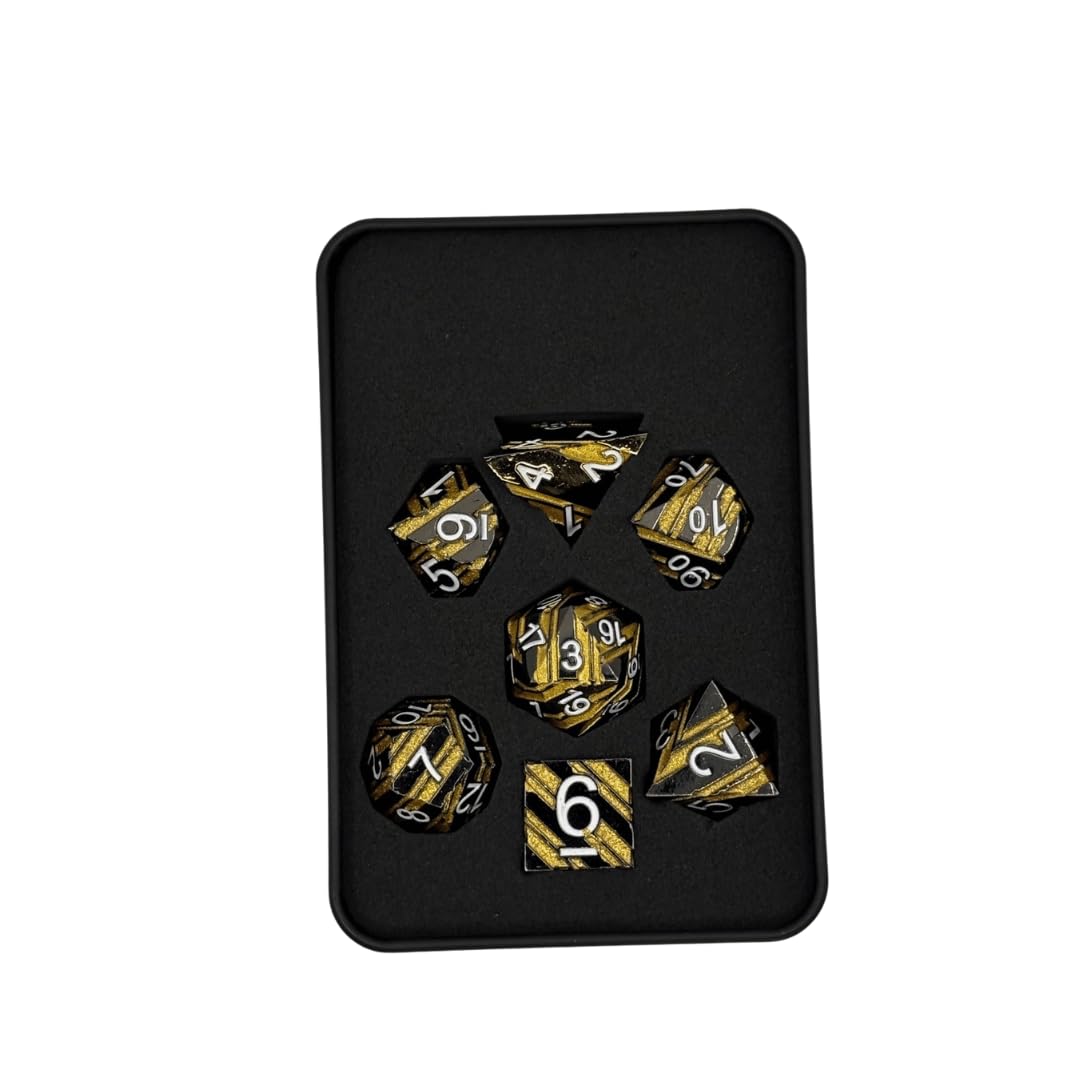 Upgrade your tabletop sessions with the Metal Strata Black & Gold poly dice set, a premium 7-piece RPG dice set crafted for both dedicated players and collectors. Made from solid metal, this metal poly dice set offers exceptional durability and a satisfying, heavyweight feel that enhances every roll.