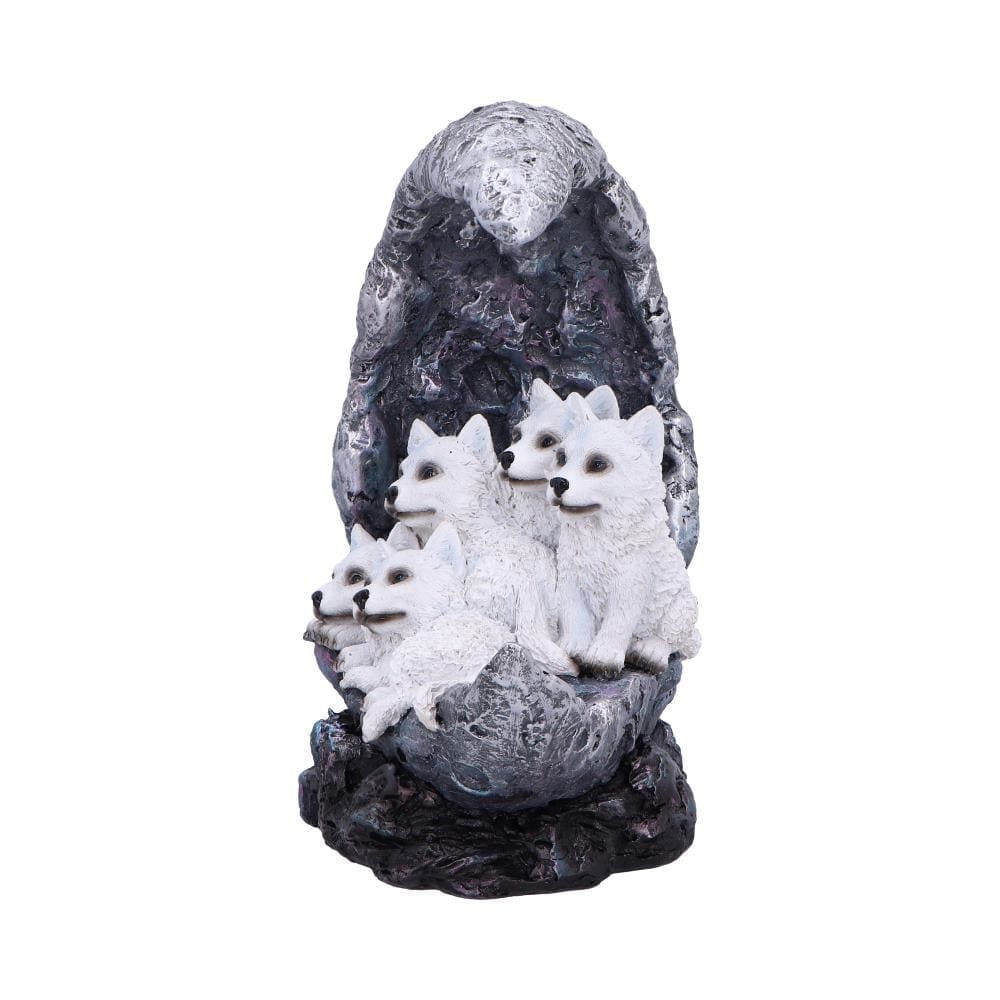 Introducing Moon Litter, a stunning ornament that showcases a delicate litter of five white wolves perched gracefully upon a crescent moon. Expertly cast in high-quality resin and meticulously hand-painted, this enchanting piece brings a touch of mystical elegance to any collection. Each ornament is carefully hand-selected and arrives in protective packaging to ensure it reaches you in pristine condition. Ideal for wolf enthusiasts and fantasy aficionados alike, Moon Litter is a captivating addition to any figurine collection, blending artistry with the allure of the wild.