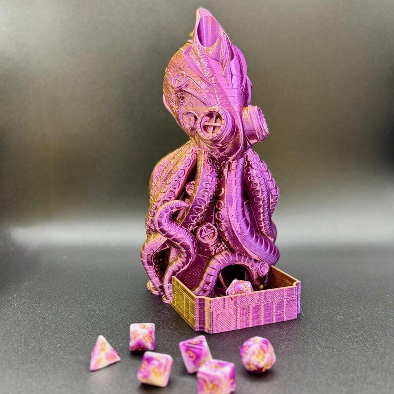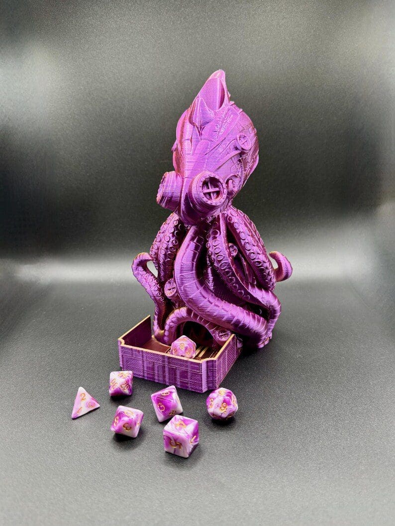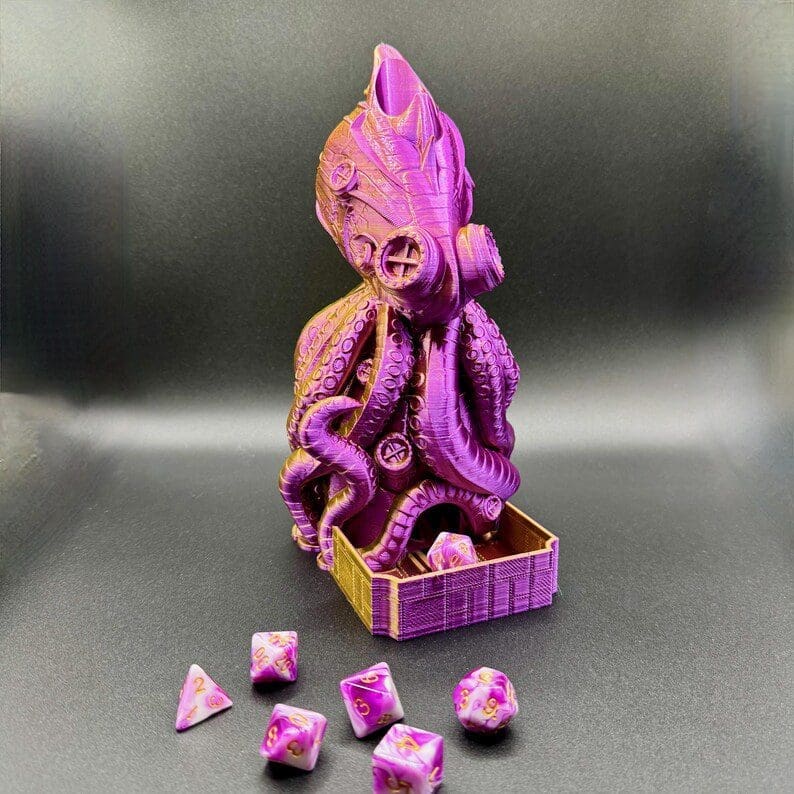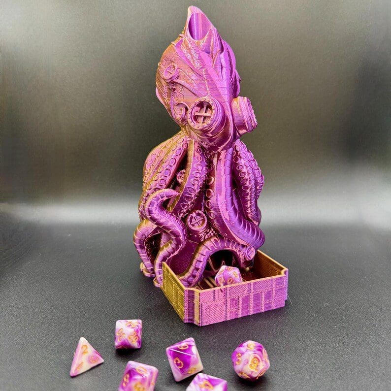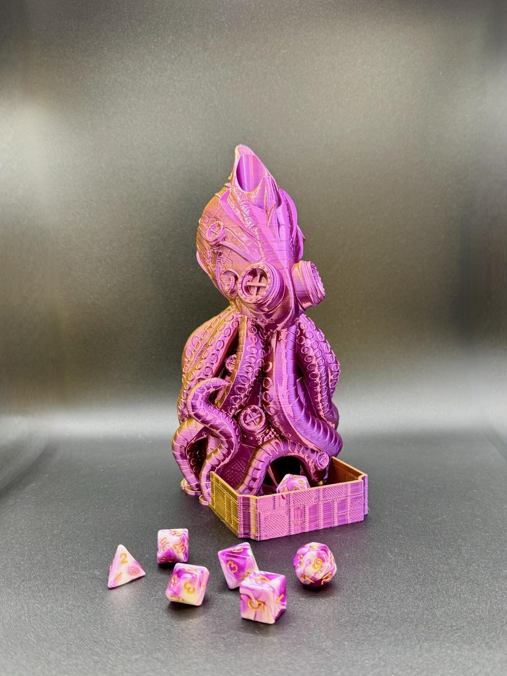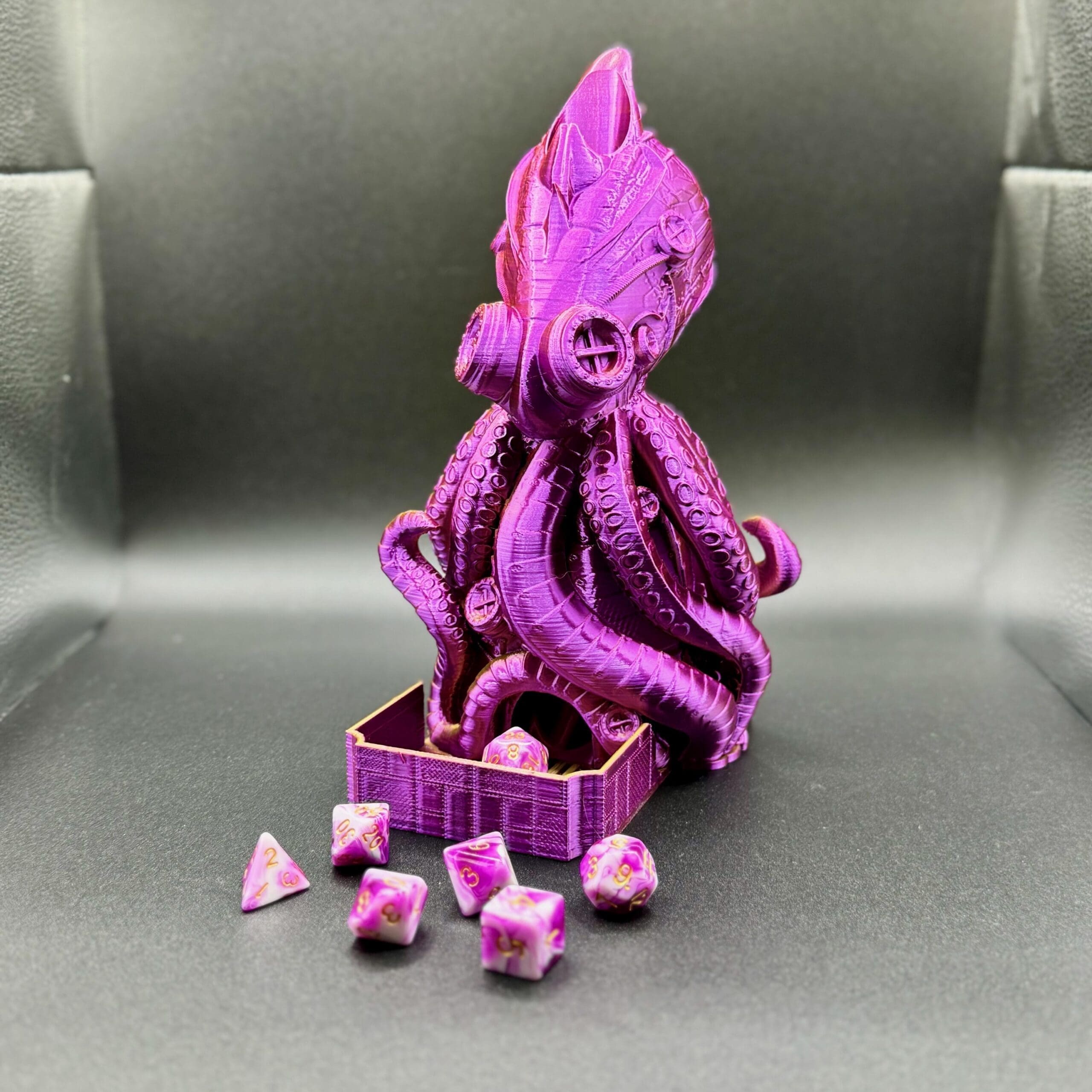Unleash the Kraken on your game nights with the Octopunk Dice Tower, the ultimate accessory for Dungeons and Dragons (D&D) and other tabletop RPGs (TTRPGs). Say goodbye to rogue dice and unfair rolls with this stunning 3D printed dice tower.