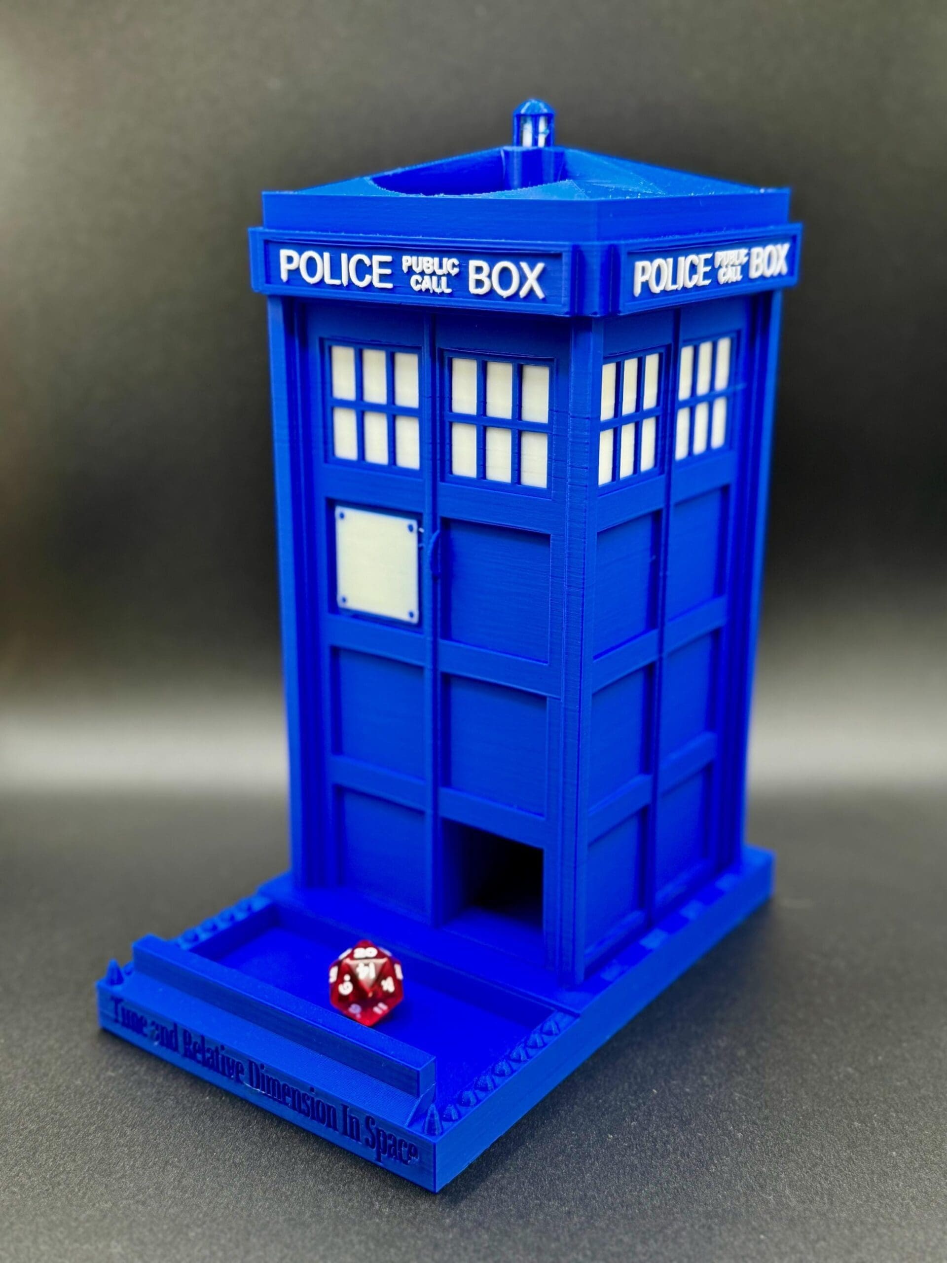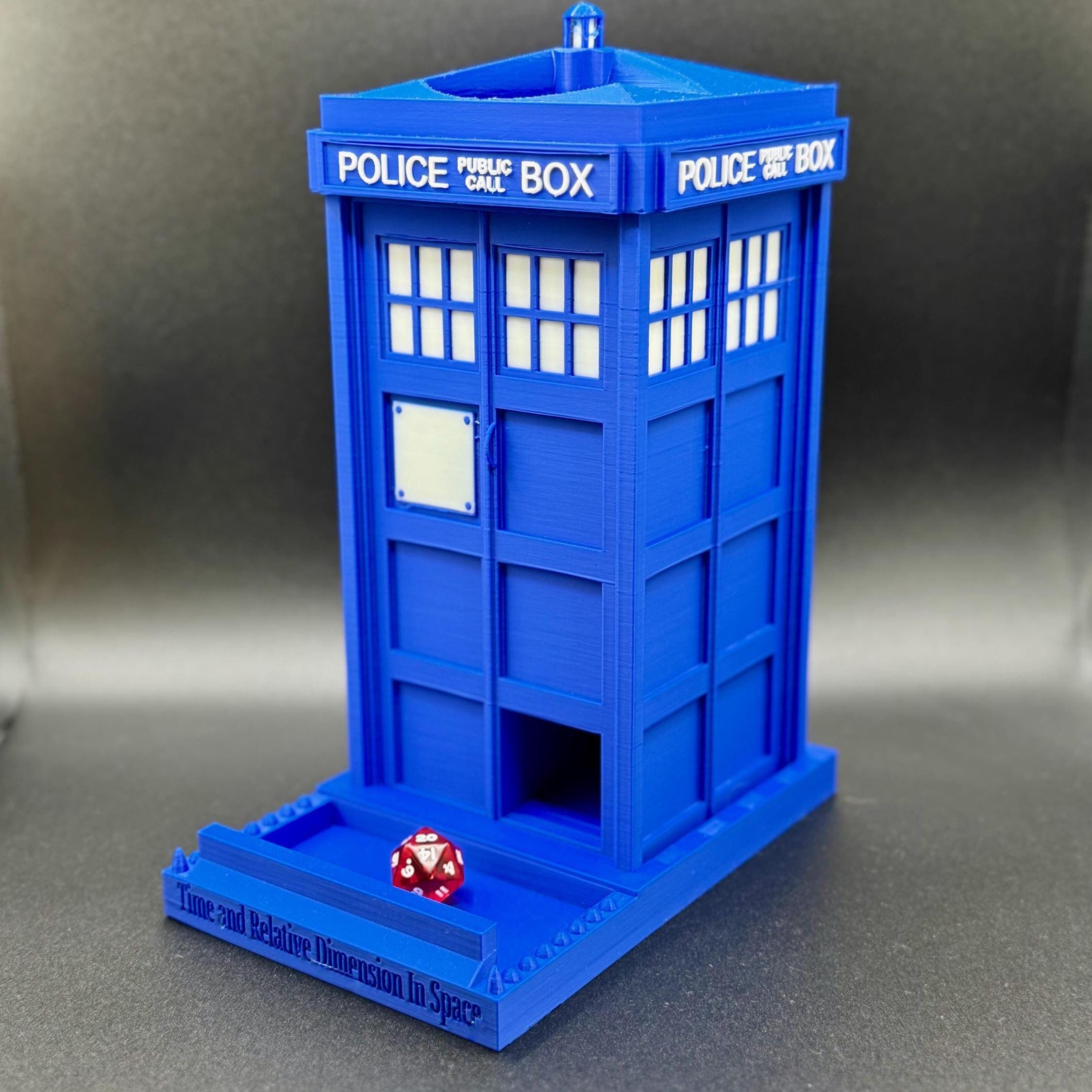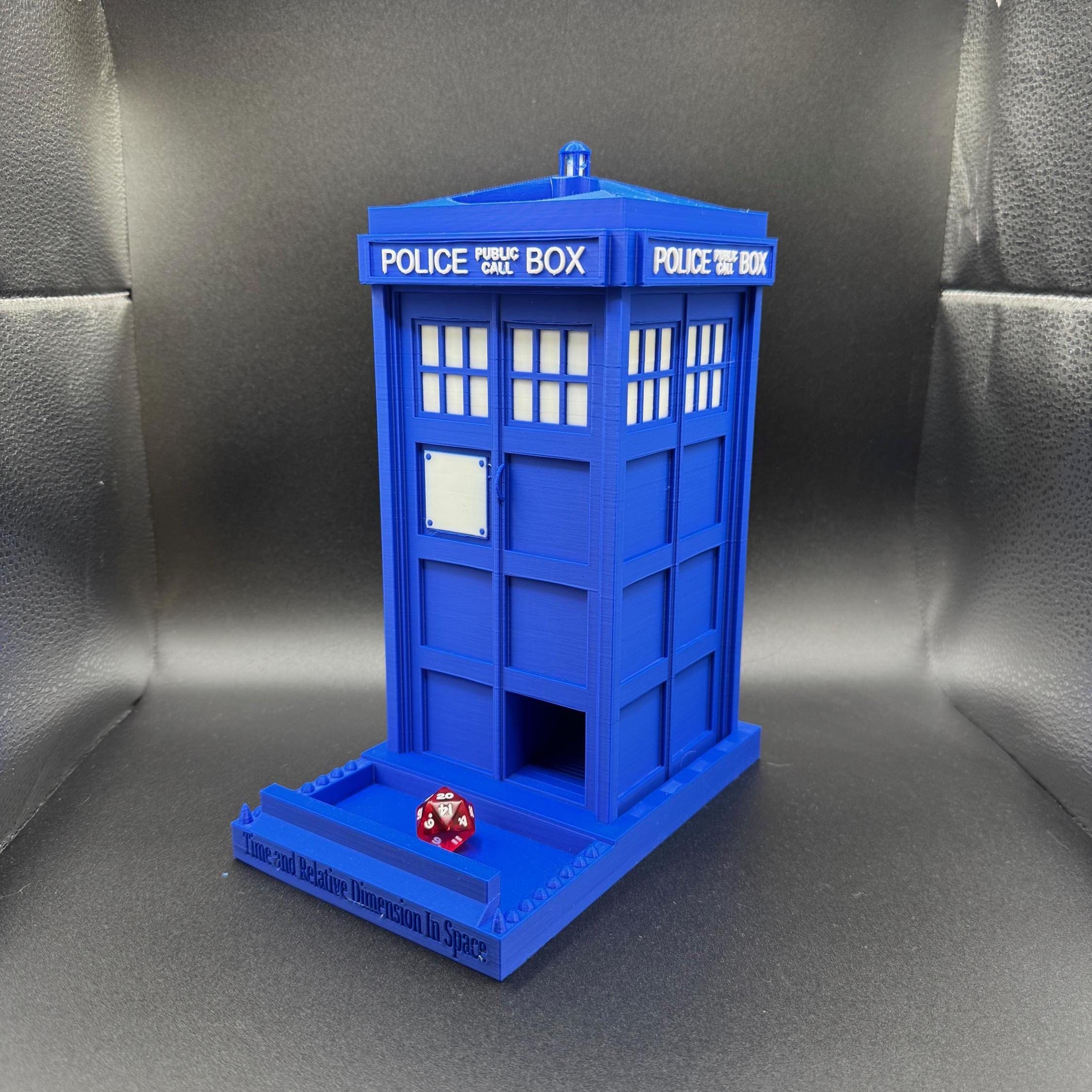 Are you tired of your dice rolling off the table? Do you want to add some excitement to your games? Look no further than our Police Box Dice Tower! Perfect for Dungeons and Dragons. The police box stairway guarantees maximum randomness for your rolls.