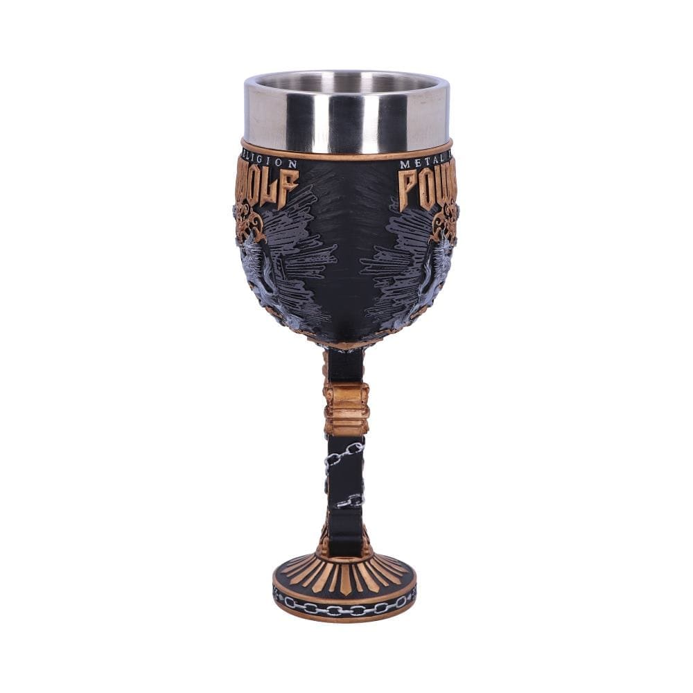 Join the Army of the Night and bang your heads to Heavy Metal masters Powerwolf, with this officially licensed goblet! Detailed in Gold and emblazoned with their ‘Metal Is Religion’ coat of arms, this goblet has been cast in the finest resin before being expertly hand-painted and features a stainless steel insert for ease of cleaning. It’s never been easier to show your unwavering loyalty to these German storytellers with alternative brand Nemesis Now’s collection of Powerwolf merchandise, painstakingly designed by their very own demonic wolf pack.