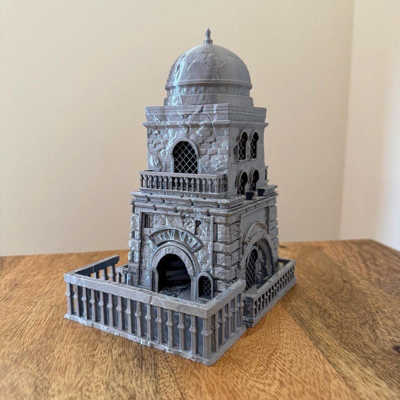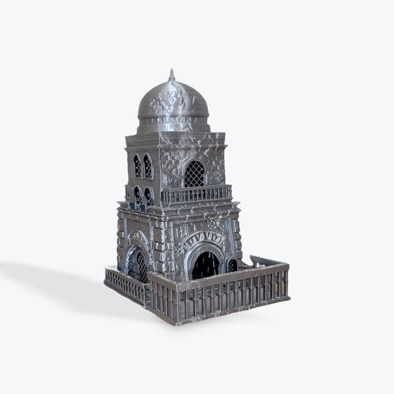 Are you tired of your dice rolling off the table? Do you want to add some excitement to your games? Look no further than our Castle Dice Towers! Perfect for Dungeons and Dragons. The Druid stairway guarantees maximum randomness for your rolls.