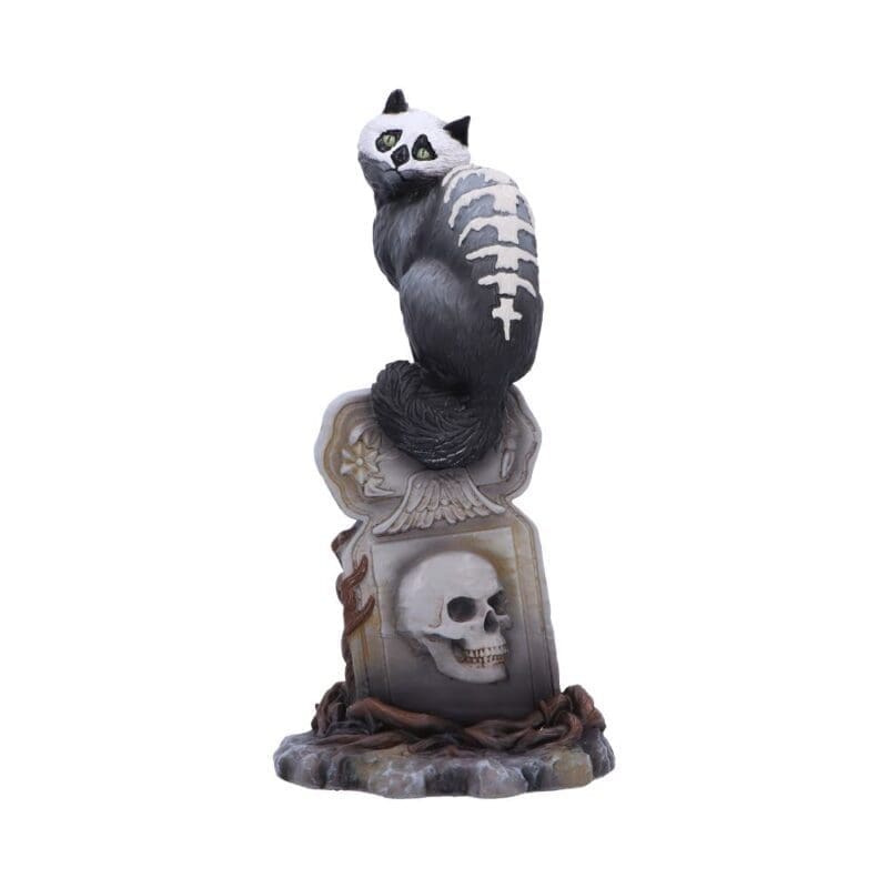 Add a gothic touch to any space with this incredibly detailed Skull Cat figurine by gothic and fantasy artist Martin Hanford. Perched atop a crooked gravestone, surrounded by winding roots, is a black feline with piercing green eyes and an exposed skull and spine. Made of the finest resin this haunting figurine has been carefully hand-painted, making it perfect for any alternative home or gothic collection.