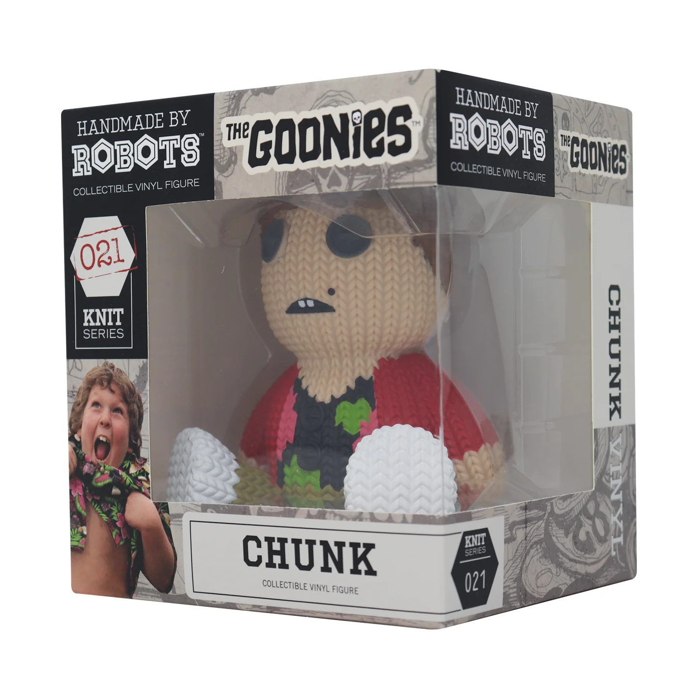 Standing at 5 inches tall, this Chunk vinyl figure is crafted from durable, high-quality vinyl and styled to look just like a hand-knit plush toy. With sculpted stitch details and a faux-knit texture, it cleverly mimics the appearance of soft yarn while keeping all of Chunk’s iconic features—from his curly hair to his bright Hawaiian shirt. It’s a collectible that perfectly blends nostalgia, humour, and unique craftsmanship.