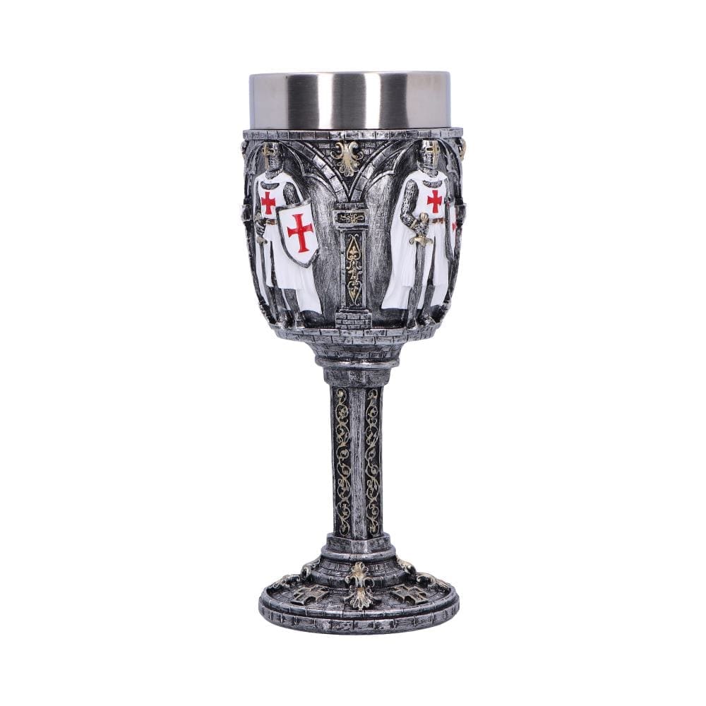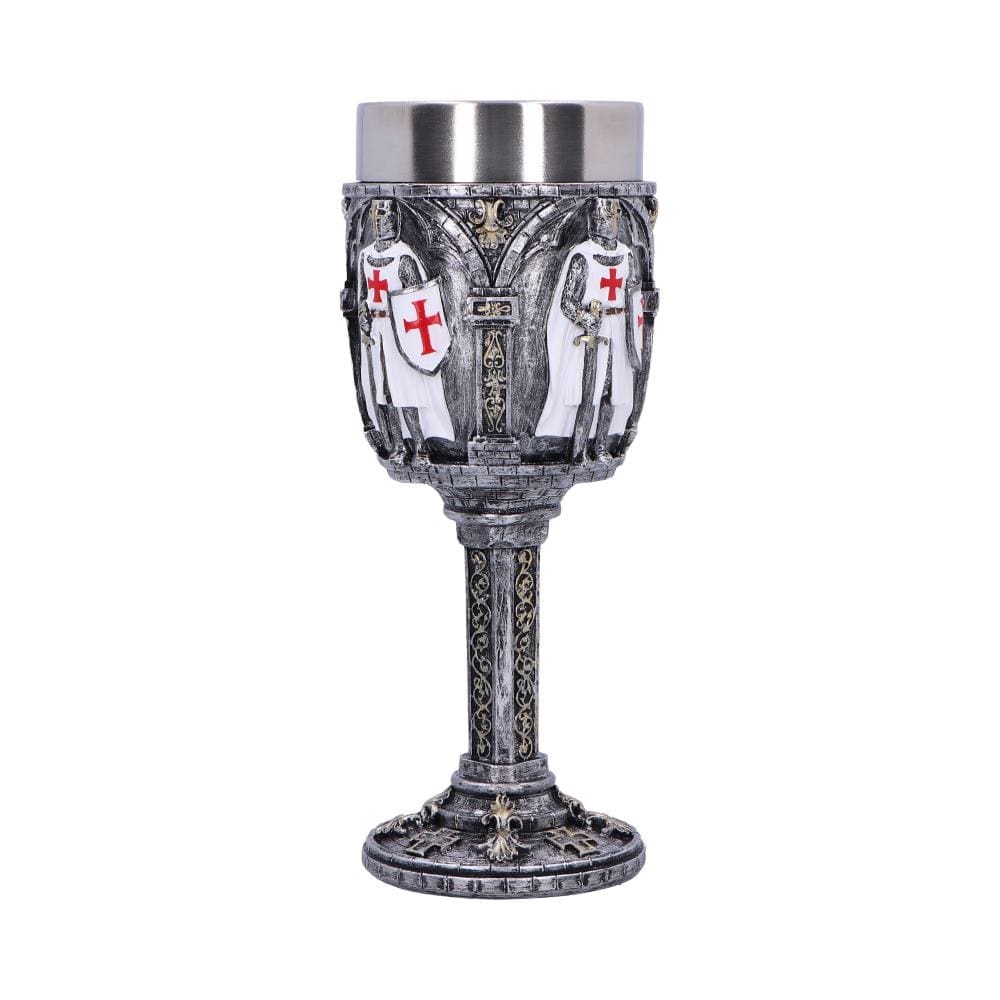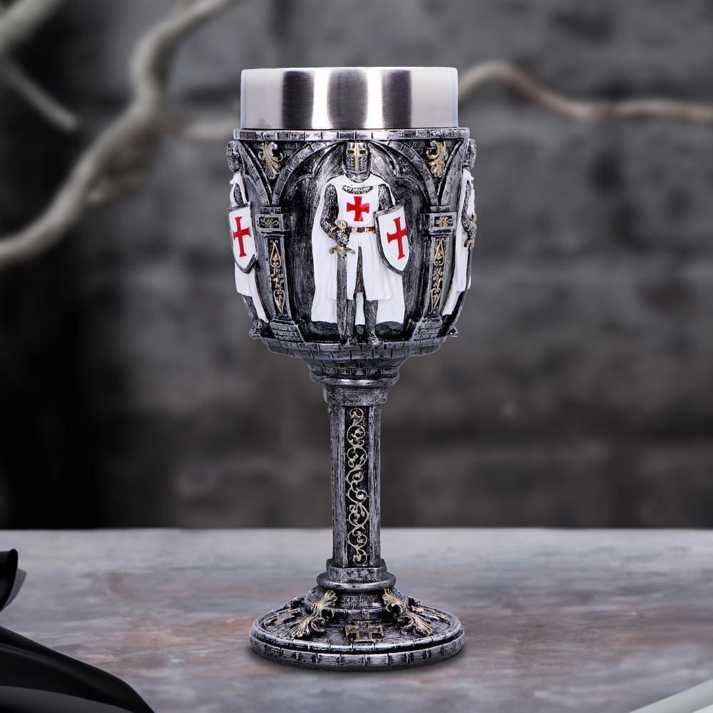 Step back through history and raise your goblet in tribute to the valiant Knights Templar with the Valiant Knight Goblet. This exquisite piece showcases a meticulously detailed architectural design, featuring a noble knight clad in chainmail and armor, draped in a white cloak adorned with the iconic red cross. Hand-painted with intricate care, this resin goblet is both a striking display and a practical vessel, complete with a removable stainless-steel insert for effortless cleaning. Perfect as a gift or a cherished keepsake, its a timeless reminder of chivalry and valor.