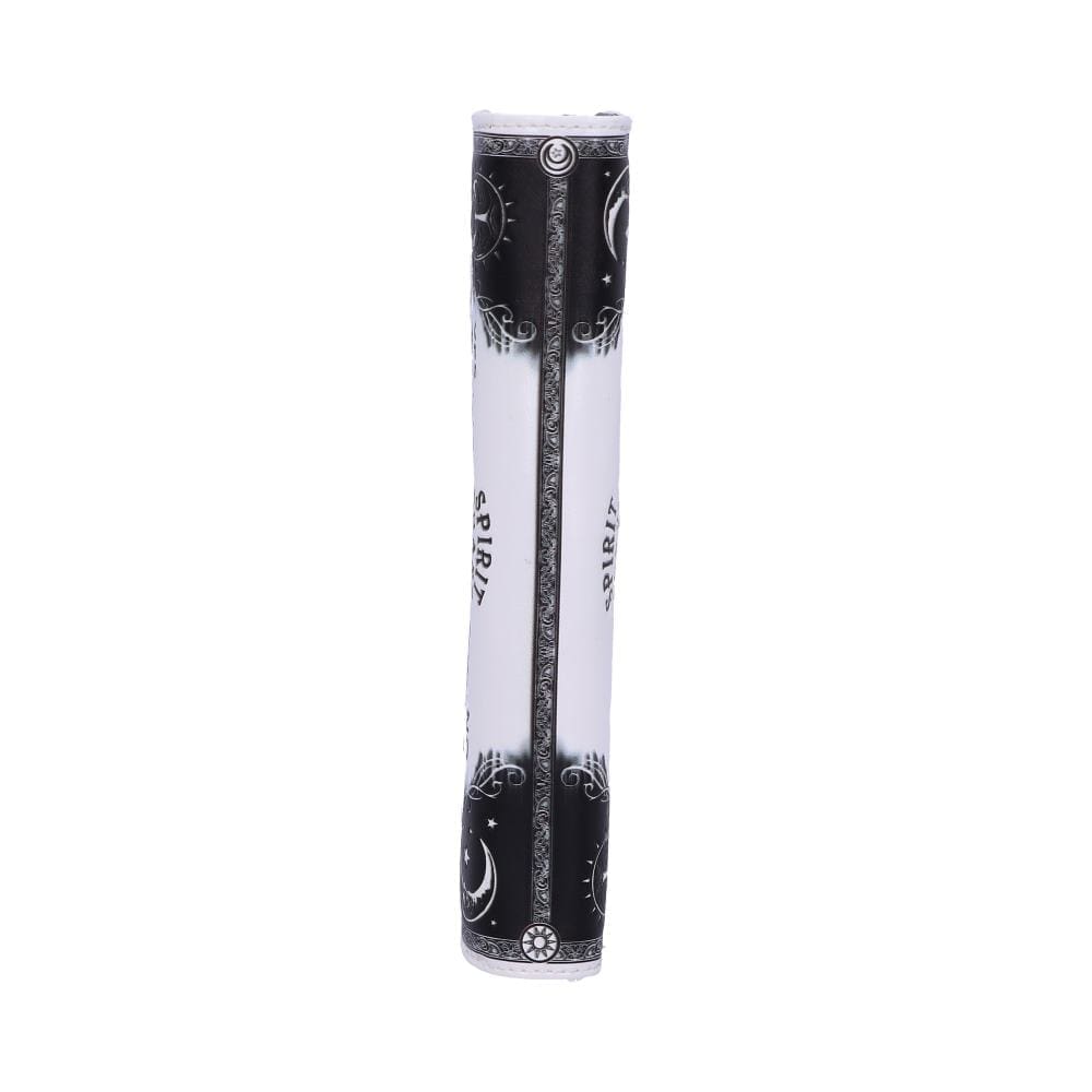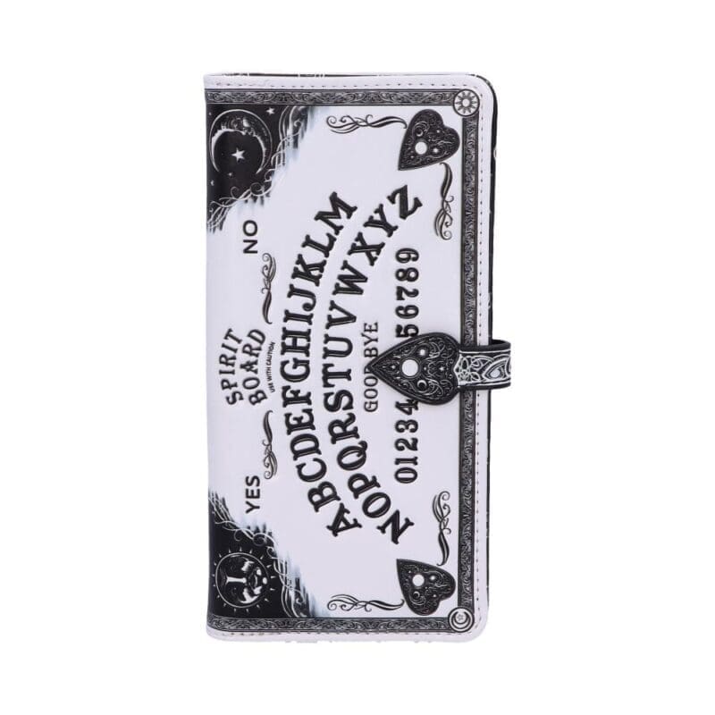 From the untamed imagination of Nemesis Now’s in-house design team, this embossed Purse is a stylish addition to any outfit. Spirit boards have long been one of the most powerful occult tools there is. Bordered with intricate baroque designs, the background is white and has the alphabet marked out in an arc. Each side of Goodbye, two ornate planchettes are pointing towards the centre, as if ready to move. The design also includes numbers 0 to 9 and the words YES and NO, as well as a warning to use with caution the power of the spirit world is not something to take lightly. The beautiful embossed detailing enhances the magic and creates a striking 3D effect.